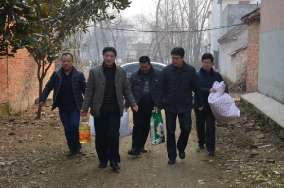 1月19日,南阳市社科联党组书记、副主席石峰带领全体班子成员,与驻村工作队人员等一道看望慰问唐河县桐寨铺镇周庄村贫困群众。