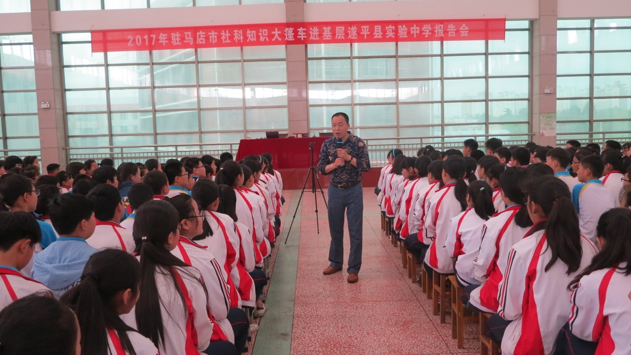 5月11日上午,驻马店社科联邀请全国优秀社科普及名家、驻马店市一高德育处主任、市一高张胜利老师来到遂平县实验中学,为2000多名中学生作了一场精彩的“感恩教育”报告会。市社科联副调研员栗贯清、遂平县社科联主席郑卫东出席报告会。