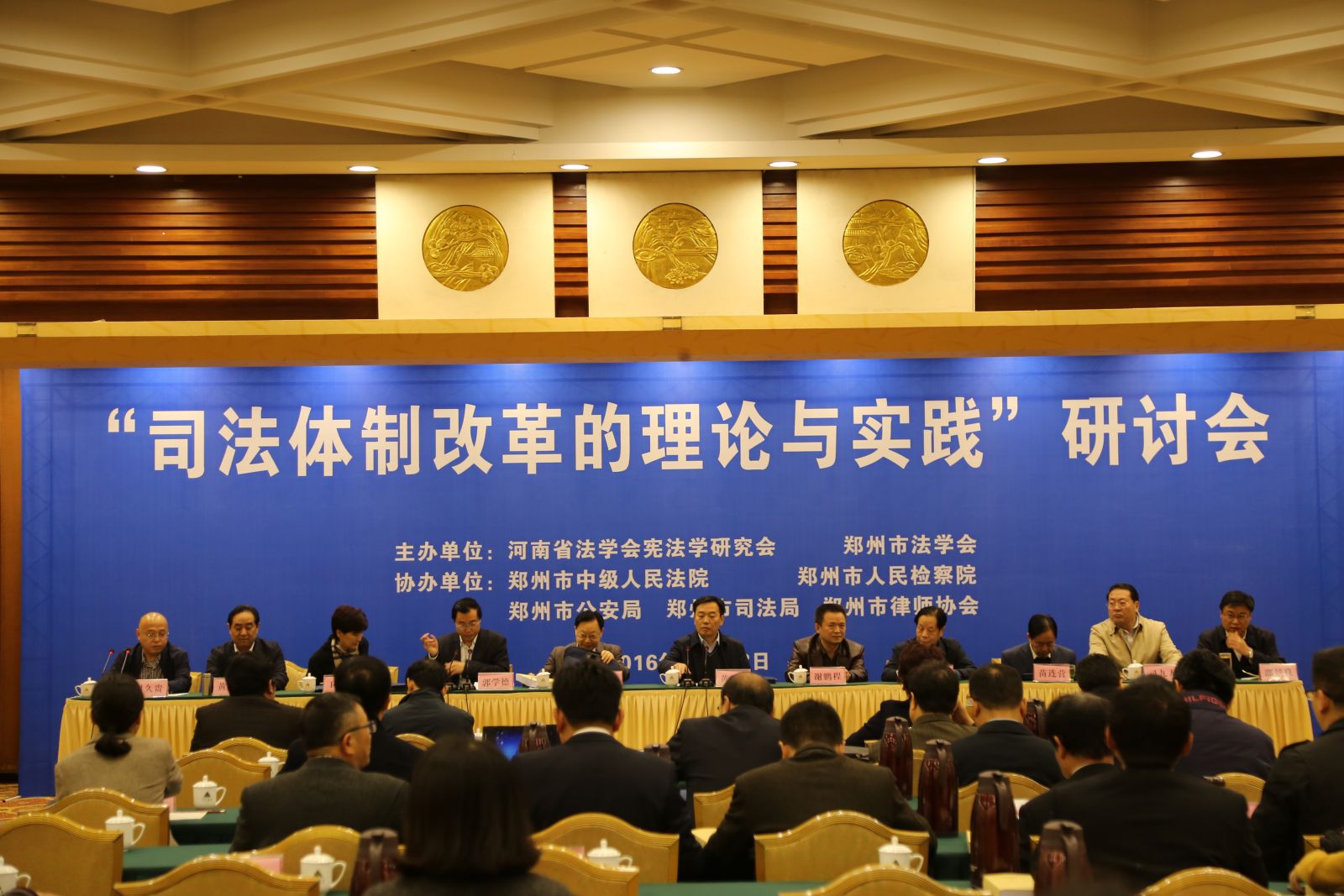 近期,由郑州市社科联所属的郑州市法学会主办的“司法体制改革的理论与实践”研讨会在嵩山饭店召开。省法学会专职副会长兼秘书长黄建中出席会议并讲话,省法学会宪法学研究会会长郭学德在开幕式上致辞,郑州市委政法委副书记、省法学会宪法学研究会副会长司久贵主持开幕式。来自全省法学界、法律界的专家学者100余人参加了此次研讨会。