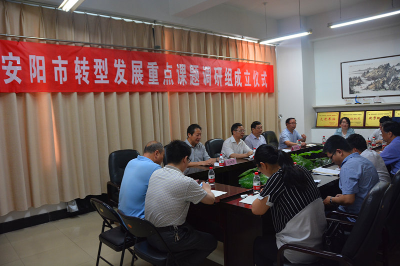 5月17日上午,由安阳市社科联牵头组织的安阳市转型升级发展重点课题调研组成立,成立仪式在党政综合楼会议室举行。会议由安阳市社科联主席刘鸿民主持,安阳市社科联党组书记郭林红介绍了课题调研组组建情况及会后调研工作进度安排,安阳市政府副市长刘建发出席会议并讲话。