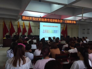 5月20日下午,濮阳市社科知识大篷车来到王助镇中心校举办家庭教育公益讲座活动。濮阳市社科联普及部部长、濮阳市心理学会讲师团名誉团长、濮阳职业技术学院工商管理系特聘教授李中坤亲自登台,做了题为《怎样做好家庭教育》的精彩讲座。濮阳开发区妇联副主席王亚婷、教育局办公室主任史爱玲、王助镇中心校书记谢佳旺和200多名学生家长聆听了这次讲座。濮阳开发区王助镇小学校长鲁成全主持了讲座,并对李老师的精彩讲授给予高度评价。