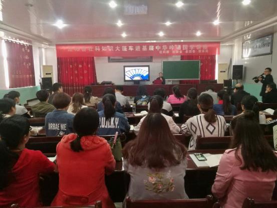 10月16日,驻马店泌阳县社科联邀请泌阳县进修学校杨玲老师,来到泌阳县春水镇中心小学,为全校教职员工举办了一场精彩的中华吟诵国学讲座。