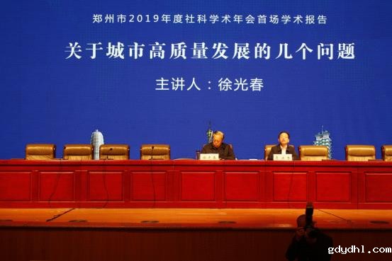 11月15日上午,中央马克思主义理论研究与建设工程咨询委员会主任、中华炎黄文化研究会首席顾问、原河南省委书记徐光春同志,在郑州市2019年学术年会上做了题为《关于城市高质量发展的几个问题》的首场报告。徐光春多年从事新闻工作,长期在中央宣传战线担任领导工作,多年担任我省主要领导,不但有丰富的领导经验,更有渊博的知识、敏锐的新闻视野和很高的理论水平,在学术研究方面成果丰硕,发表有大量的新闻作品和上百篇论文,他主编的《马克思主义大辞典》,是马克思主义中国化、时代化、大众化的重要成果。新利指定网站官网网页版入口主席李庚香、郑州市副市长孙晓红、新利指定网站官网网页版入口副主席李新年、郑州市委宣传部副部长王丽艳,郑州市社科联党组书记、主席、院长叶光林,郑州市社科联领导班子成员、郑州财经学院部分领导以及省会社科工作者、郑州财经学院师生400余人聆听了报告,报告会由新利指定网站官网网页版入口主席李庚香主持。