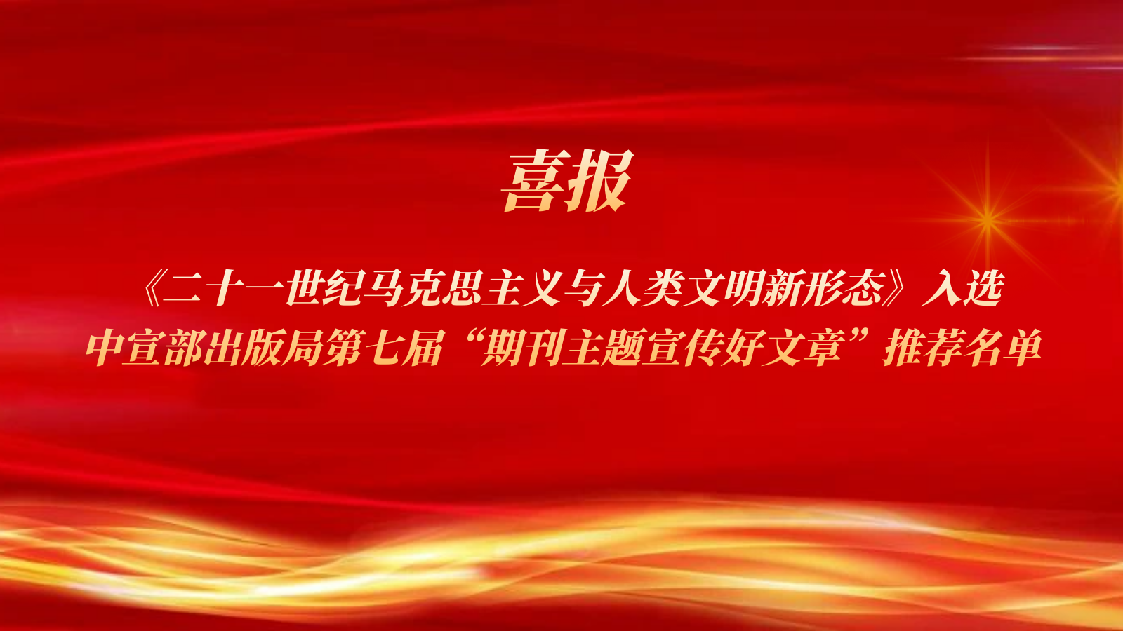 《二十一世纪马克思主义与人类文明新形态》一文进入中宣部出版局第七届“期刊主题宣传好文章”推荐名单