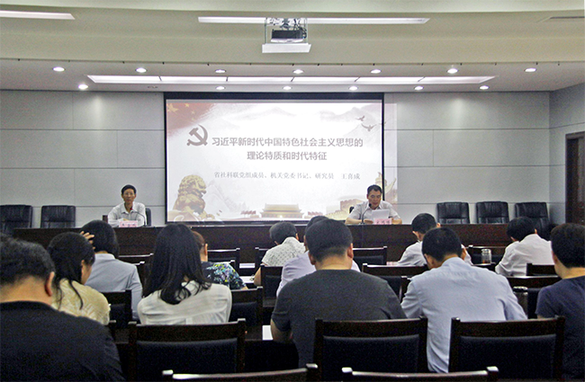 为深入学习习近平新时代中国特色社会主义思想,把习近平新时代中国特色社会主义思想转化为推动社科工作的实际成效,用新思想统领和指导精神文明建设。5月21日上午,luck18(中国)体育党组成员、机关党委书记、研究员王喜成同志为党员干部做了一场主题为《习近平新时代中国特色社会主义思想的理论特质和时代特征》的专题报告会。
