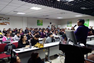 讲座紧紧围绕心理学与说话——探讨说话的三个境界、科学练声——关于吐字发声的一些基础知识、公众演说的一些技巧三部分展开。武老师运用富有哲理的故事、鲜活生动的案例、发人深省的分析,以有思想内涵的美妙语言,以有图像视频的魅力课件,让听众在轻松快乐中学到知识、受到启发、获得成长,赢得了听众朋友们的阵阵掌声。