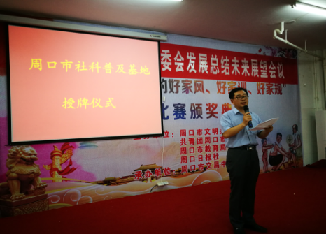 市社科联普及部部长崔璨首先宣读了《关于授予黄泛区农场场史馆、周口市文昌中学 、项城市博物馆“周口市社科普及基地”称号的决定》。