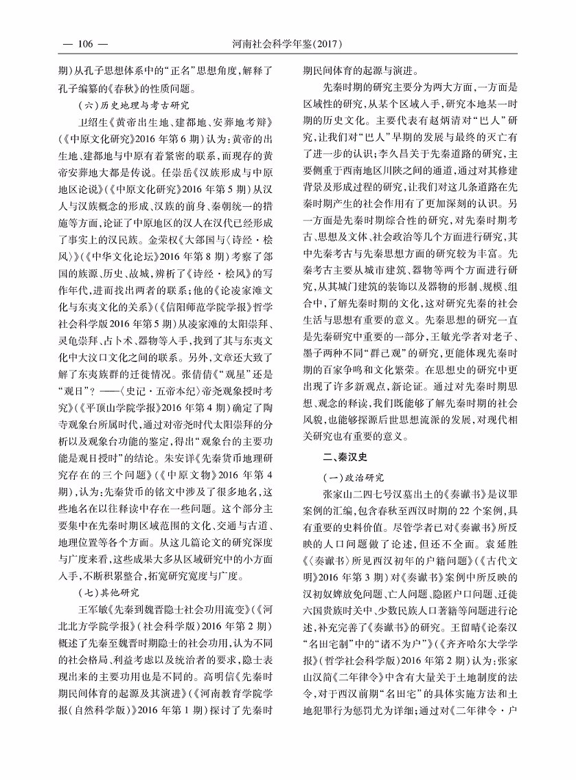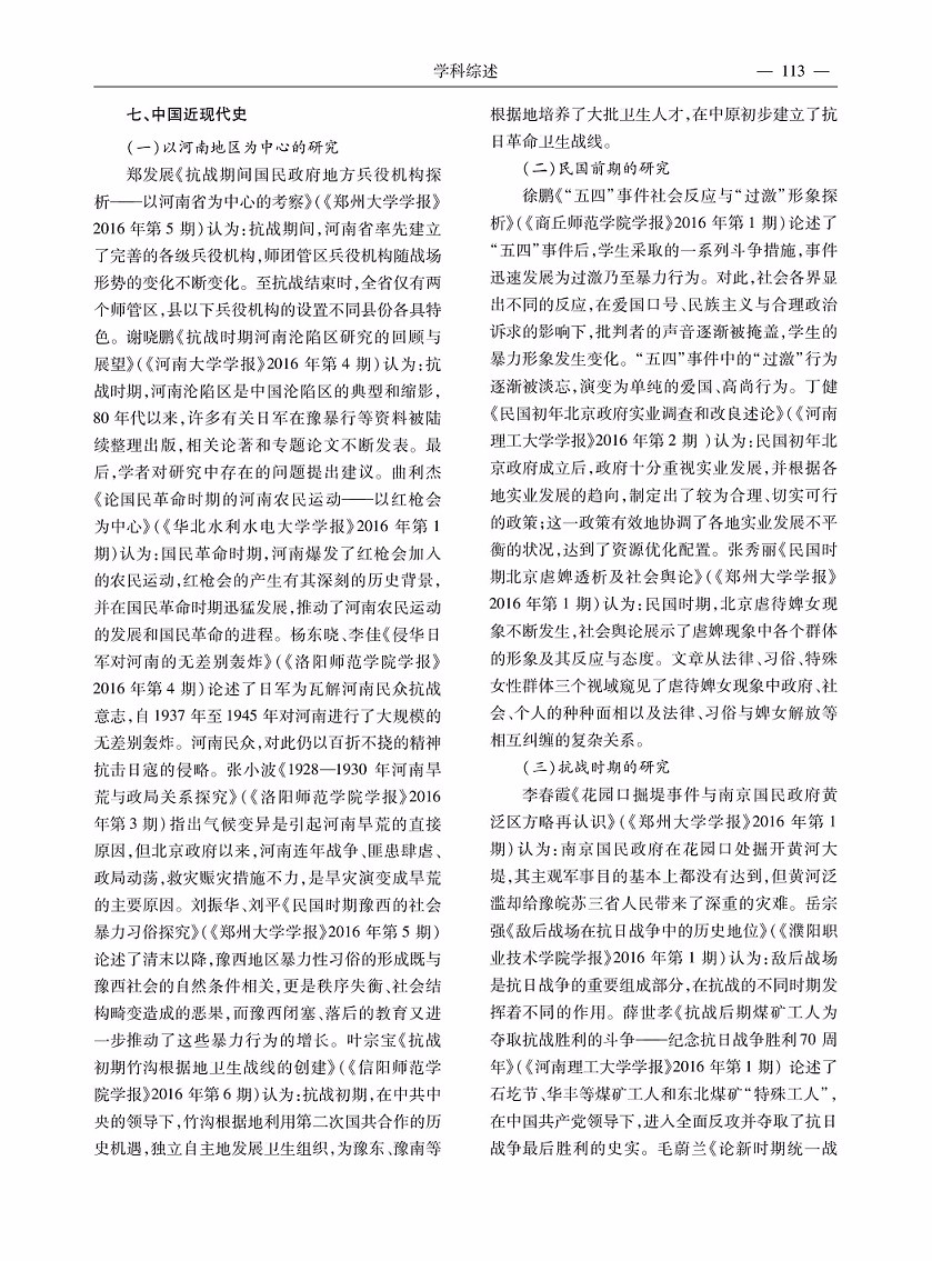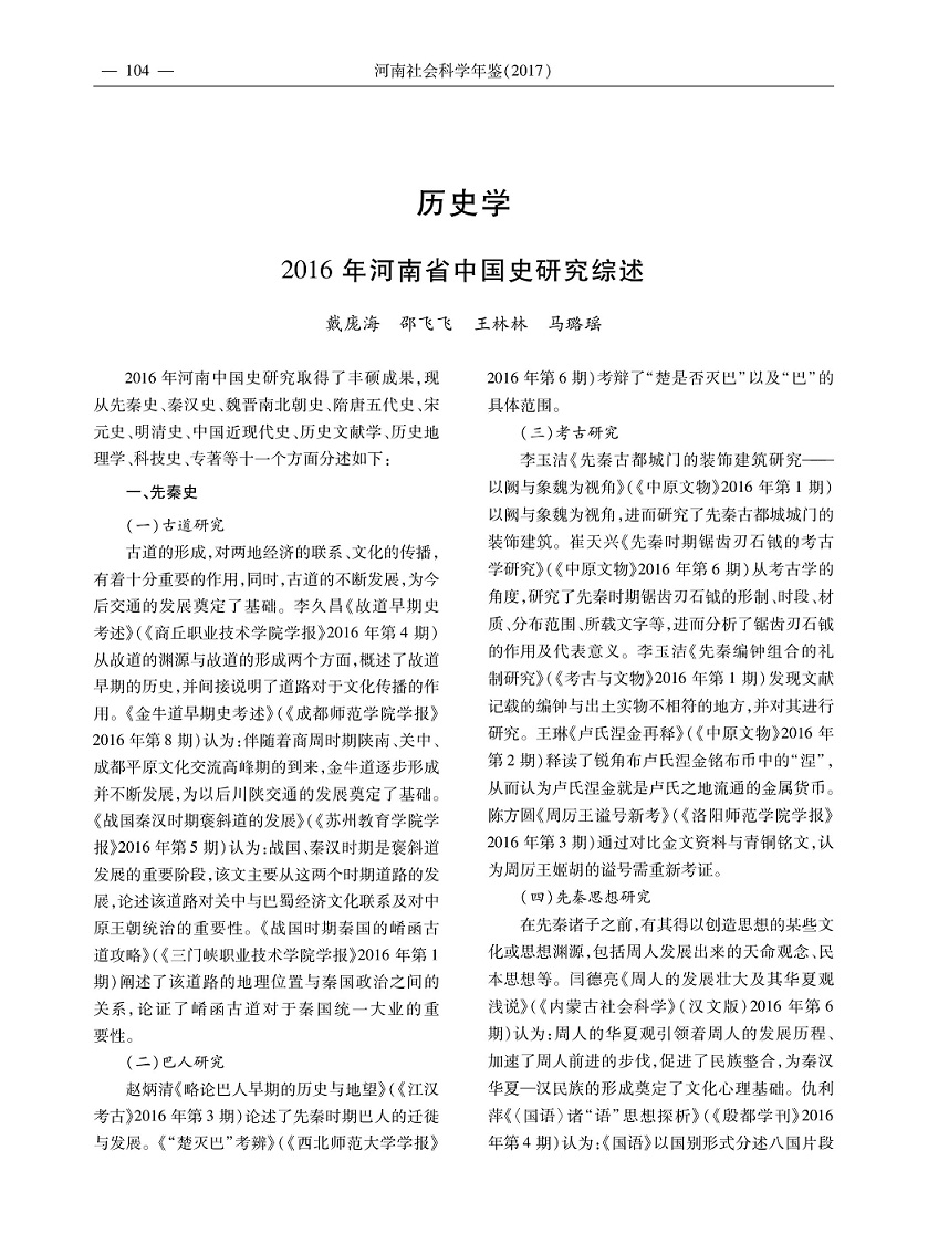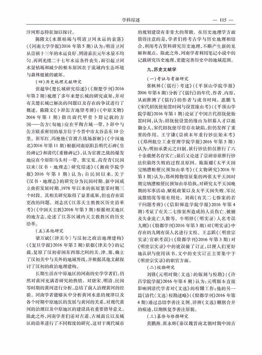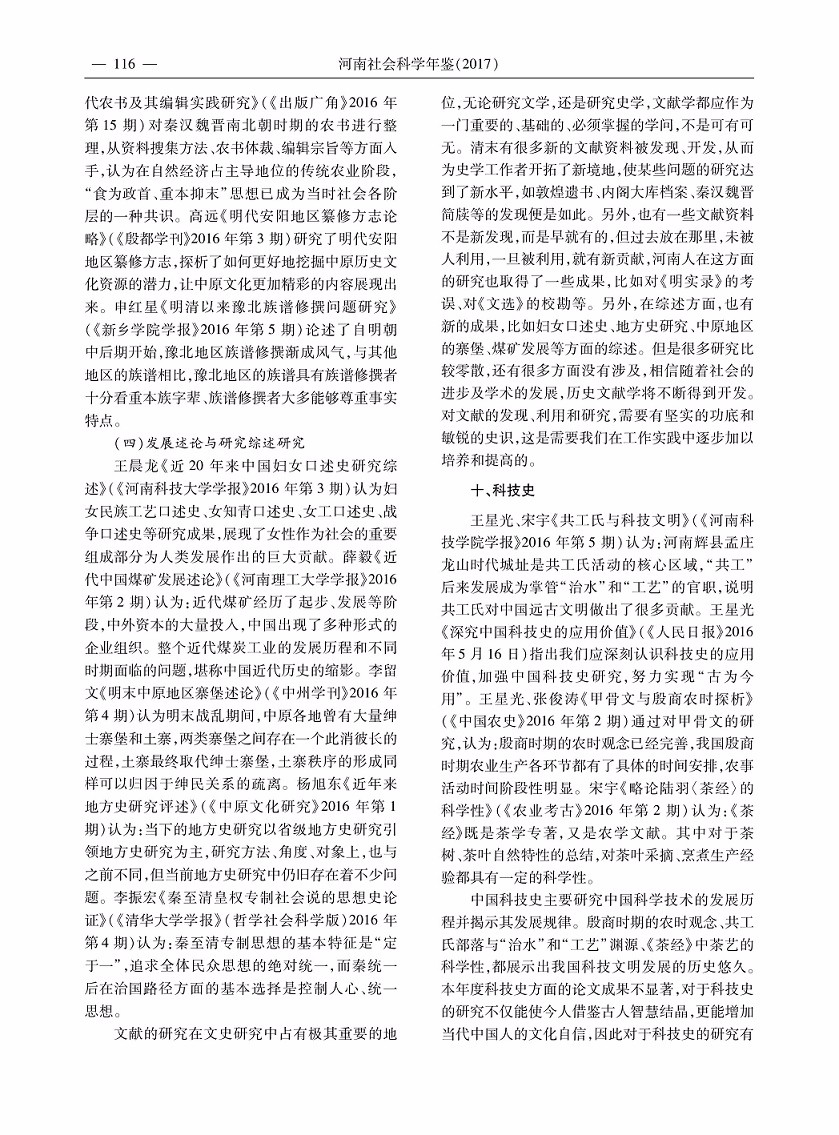 2016年度河南省历史学研究综述