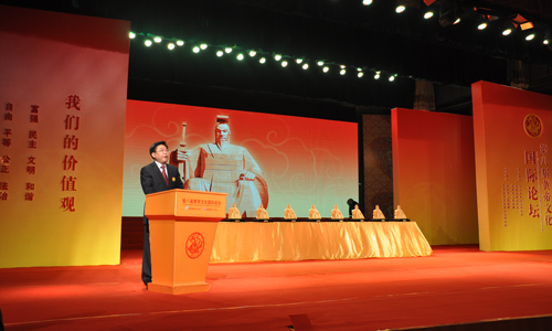 在开幕式上,中华炎黄文化研究会常务副会长赵德润致开幕词,郑州市人民政府副市长刘东致欢迎词,中国先秦史学会副会长兼秘书长宫长为、新郑市委书记王广国先后致词,中华炎黄文化研究会常务副会长赵德润、中国古都学会名誉会长朱士光、中国殷商文化学会会长王震中、中国明史学会会长商传、中国岩画学会会长王建平、中国秦汉史文化研究会秘书长赵凯、河南省黄帝故里文化研究会名誉会长李柏拴、河南省姓氏文化研究会会长林宪斋一起见证历史,启动了论坛。新郑市人民政府市长刘建武主持了开幕式。