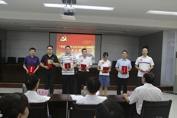 活动共分为四项内容,首先,由王喜成副主席带领全体党员重温入党誓词,通过重温入党誓词,牢记入党誓词,使广大党员严格以党员的标准要求自己,时时处处发挥党员的先锋模范作用。随后,进行了“我最喜爱的习总书记的一句话”主题演讲比赛,共有13名选手参赛,由9个支部书记组成评委团,分别从演讲内容、语言表达、形象风度等三个方面对选手打分,选手们围绕自己最喜欢的习总书记的一句话,联系自身、结合工作,谈感想、谈体会、表决心,精彩的演讲掀起了活动的高潮,掌声不绝于耳。通过演讲深入推进了干部职工对习近平新时代中国特色社会主义思想的学习,持续增强了干部职工对学习成果的理解和转化。为了增强干部职工的参与度,颁奖仪式之前,增加了“党建知识小问答”,广大干部职工踊跃参加,既活跃了气氛又增强了知识,取得了良好的活动效果。