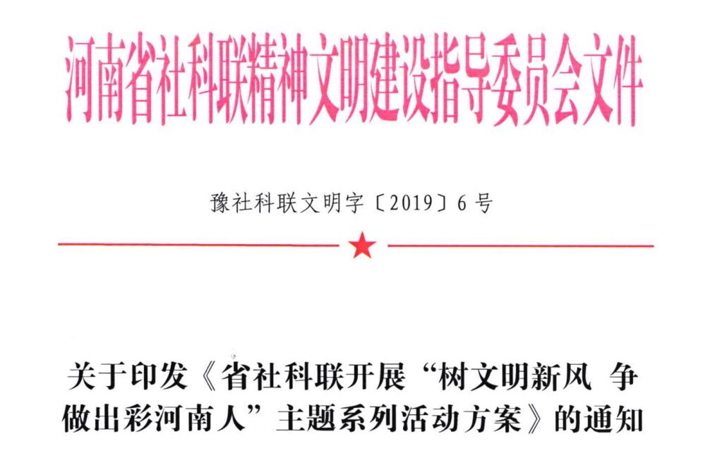 豫社科联文明字〔2019〕6号 关于印发《luck18(中国)体育开展 “ 树文明新风 争做出彩河南人 ” 主题系列活动方案》的通知