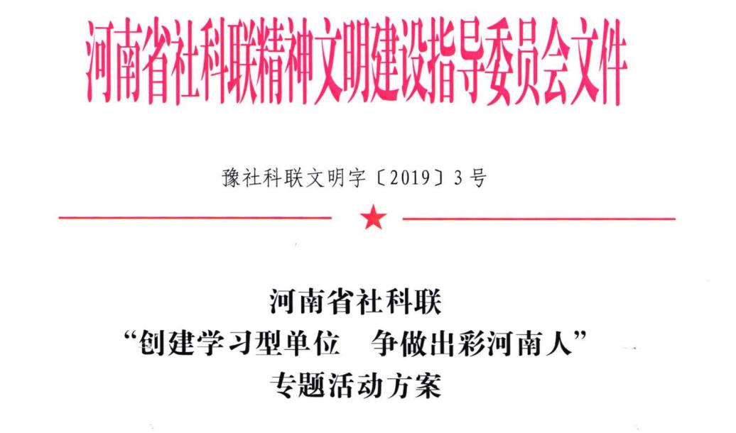 豫社科联文明字〔2019〕3号 新利指定网站官网网页版入口 “ 创建学习型单位 争做出彩河南人 ” 专题活动方案