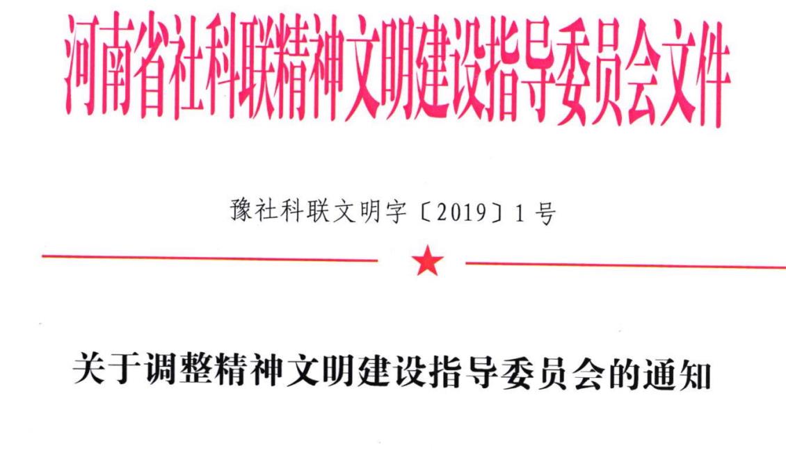 豫社科联文明字〔2019〕1号 关于调整精神文明建设指导委员会的通知