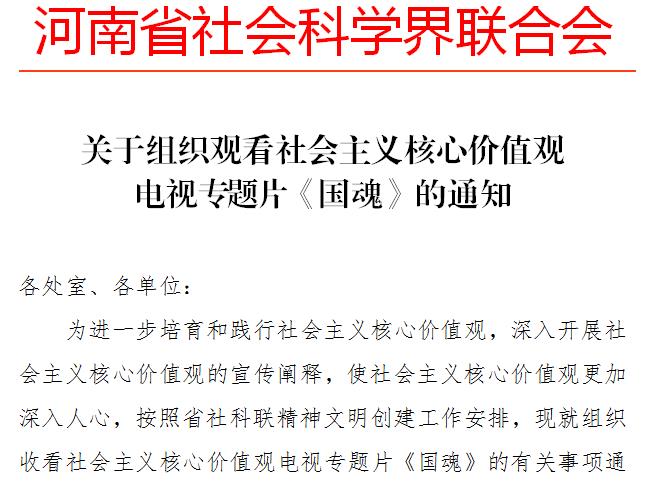 关于组织观看社会主义核心价值观 电视专题片《国魂》的通知