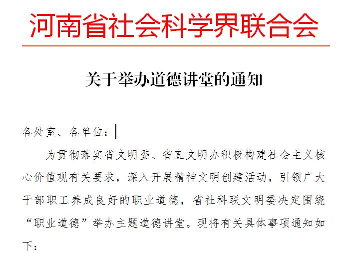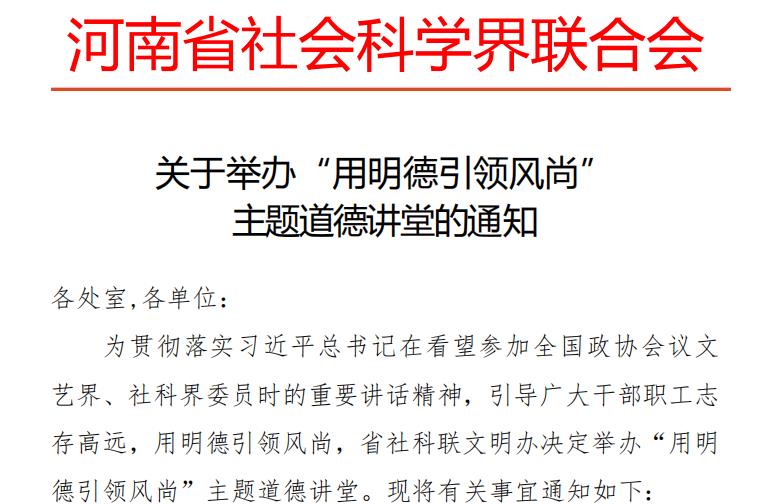 关于举办“用明德引领风尚” 主题道德讲堂的通知