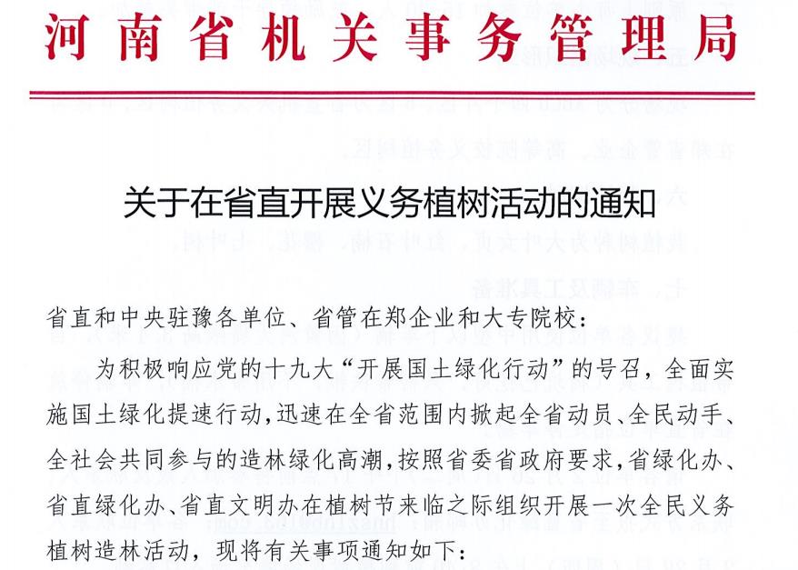 河南省机关事务管理局关于在省直开展义务植树活动的通知