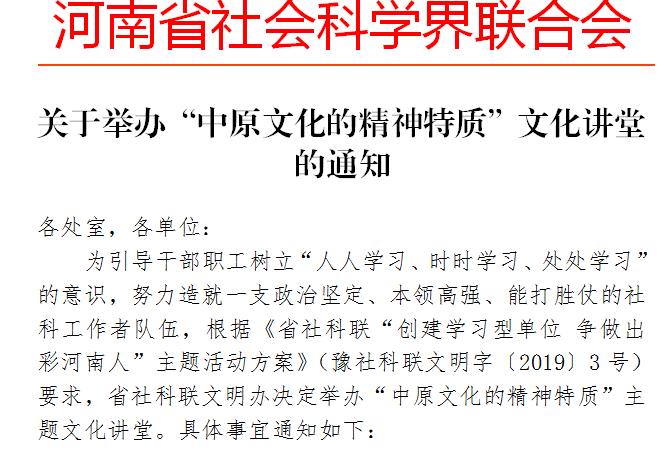 关于举办“中原文化的精神特质”文化讲堂的通知